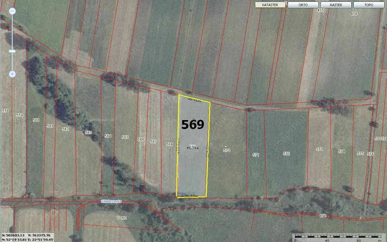 Na sprzedaż działka rolnaOferuję na sprzedaż atrakcyjną działkę rolną o powierzchni 4639 m, położoną w malowniczej okolicy Chlebczyn gmina Sarnaki powiat Łosice numer działki 569